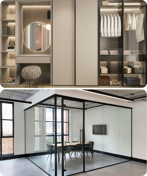 With a strong reputation for precision, durability, and elegant design, we specialize in a wide range of products, - including Pooja Doors, Aristo Sliding Wardrobes, Diamond Mirrors, LED Mirrors, Glass Partitions, Hall Partitions, Bathroom Shower Enclosures, and Glass Railings. Every project begins with a personalized consultation, where our experts understand your space, style, and functional needs.